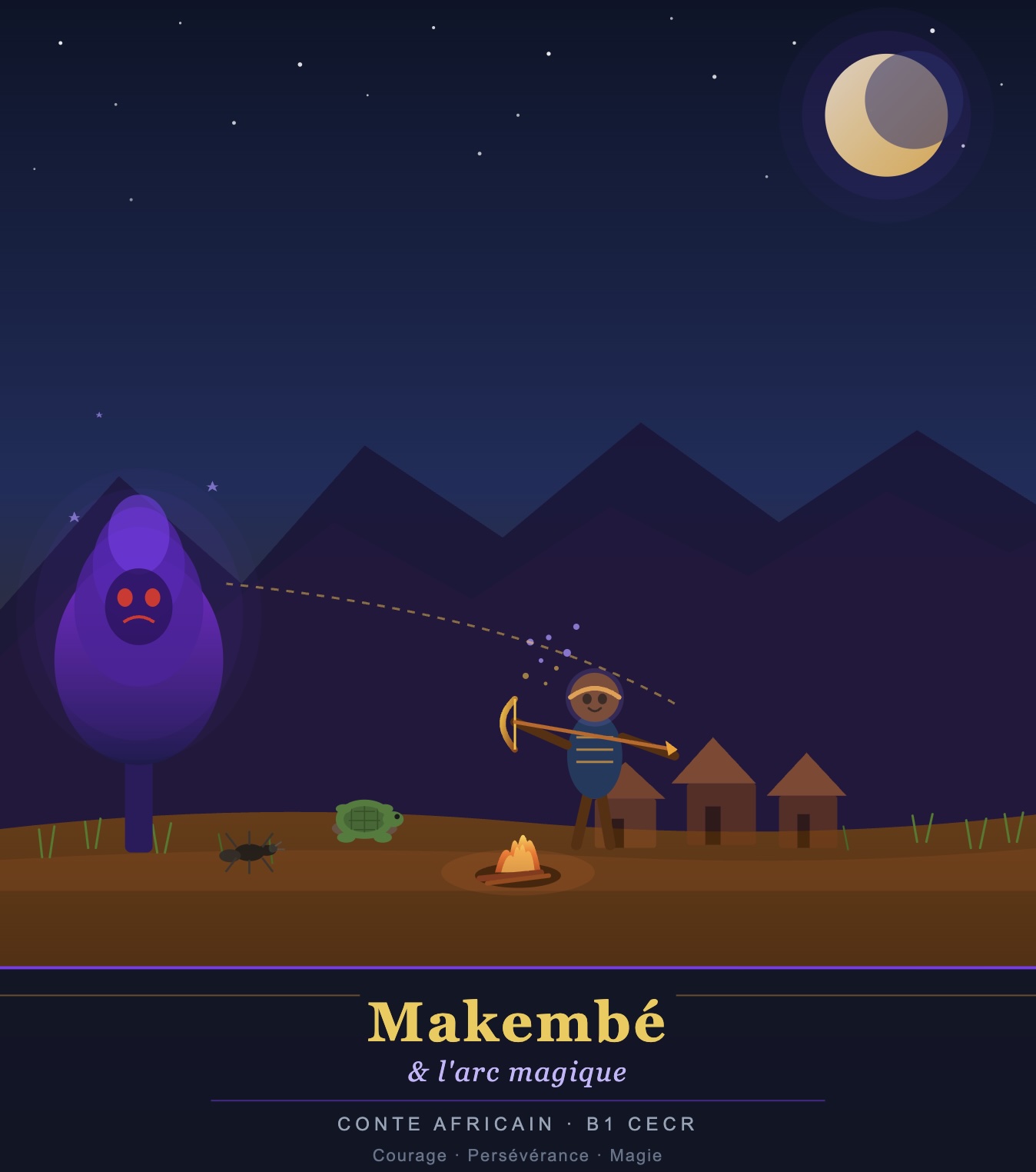 compréhension écrite / Niveau B1 Makembé et l’arc magique. Compréhension écrite à partir d’un conte, niveau B1 24 mars 202624 mars 20260 Pour imprimerTélécharger ShareSharePin ItShare